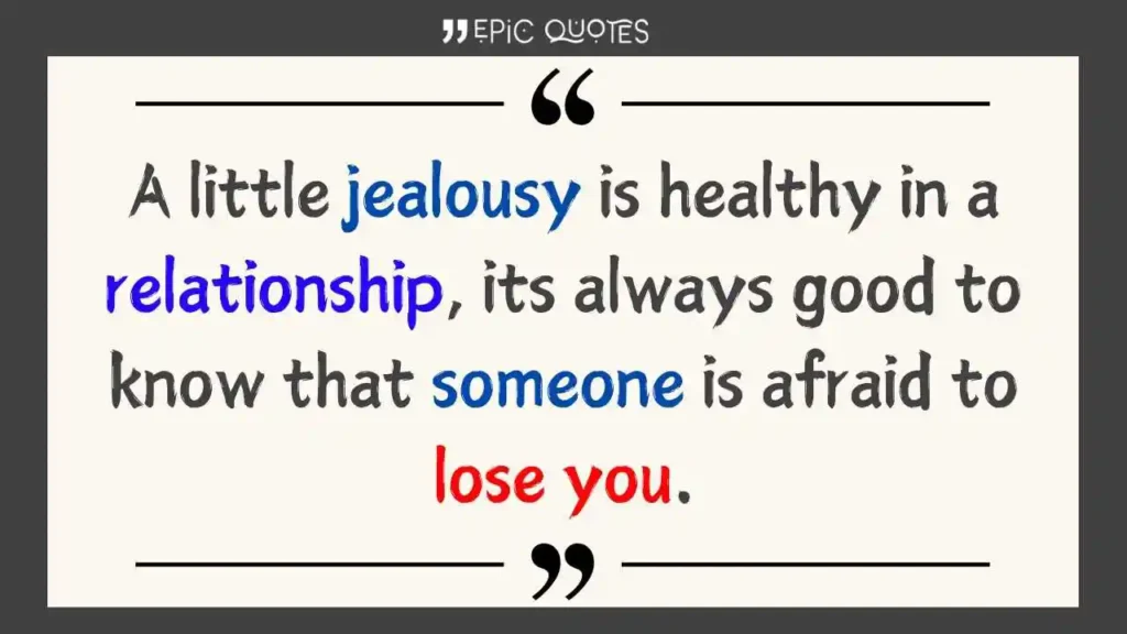 A little jealousy is healthy in a relationship, its always good to know that someone is afraid to lose you.