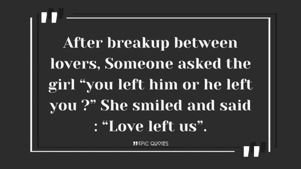 After breakup between lovers, Someone asked the girl “you left him or he left you ?” She smiled and said : “Love left us”.