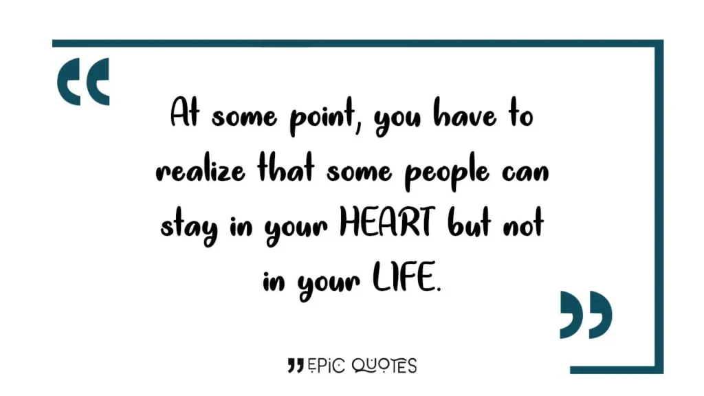 At some point, you have to realize that some people can stay in your HEART but not in your LIFE.
