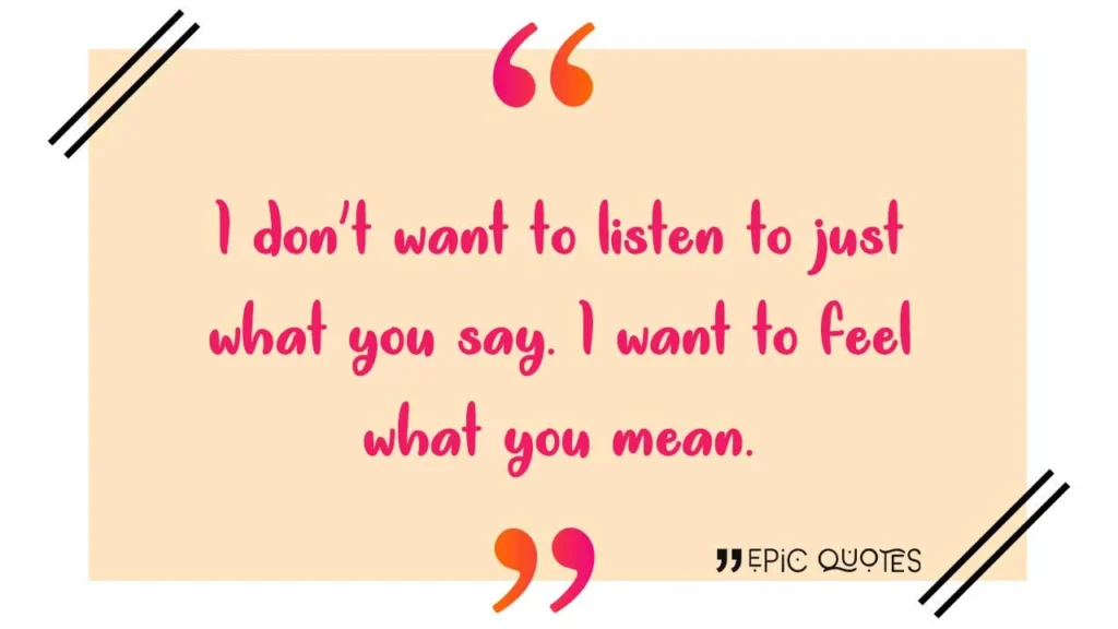I don’t want to listen to just what you say. I want to feel what you mean.