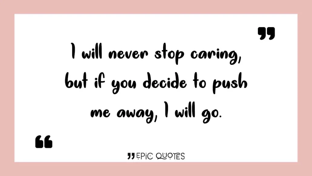 I will never stop caring, but if you decide to push me away, I will go.