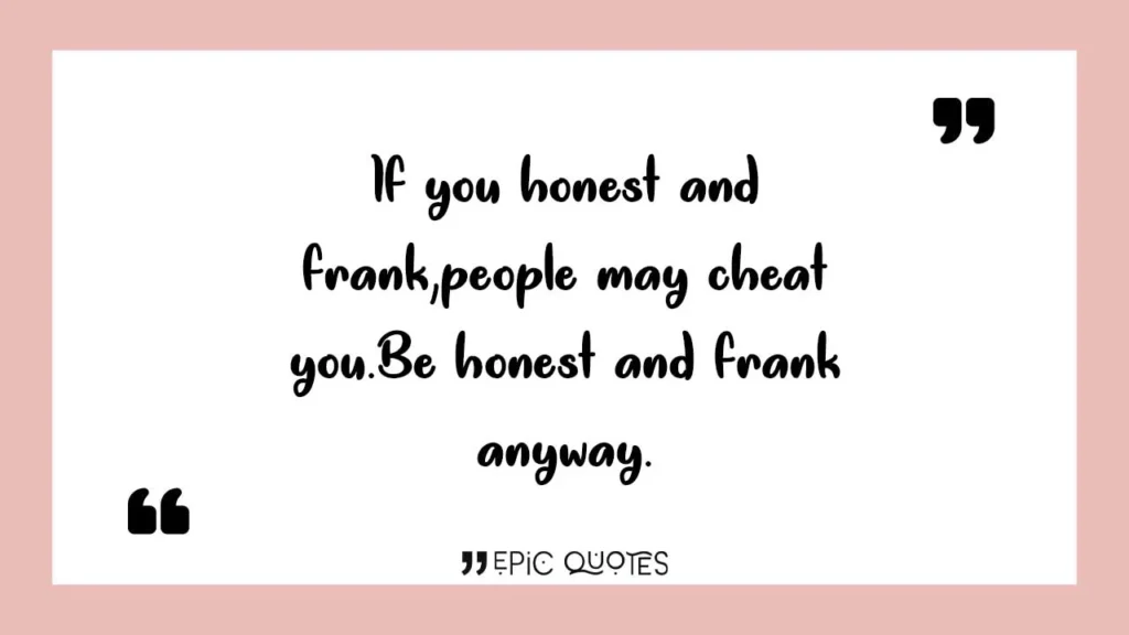 If you honest and frank,people may cheat you.Be honest and frank anyway.