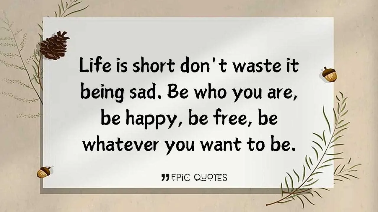 Life is short don’t waste it being sad. Be who you are, be happy, be free, be whatever you want to be.