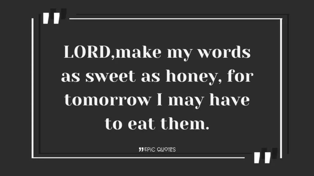 LORD,make my words as sweet as honey, for tomorrow I may have to eat them.