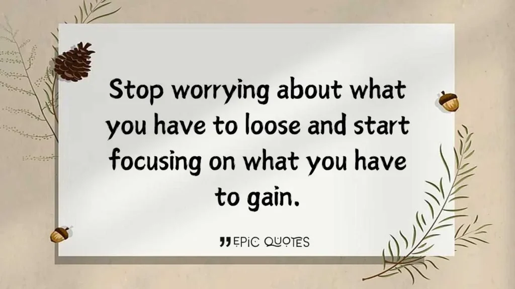 Stop worrying about what you have to loose and start focusing on what you have to gain.