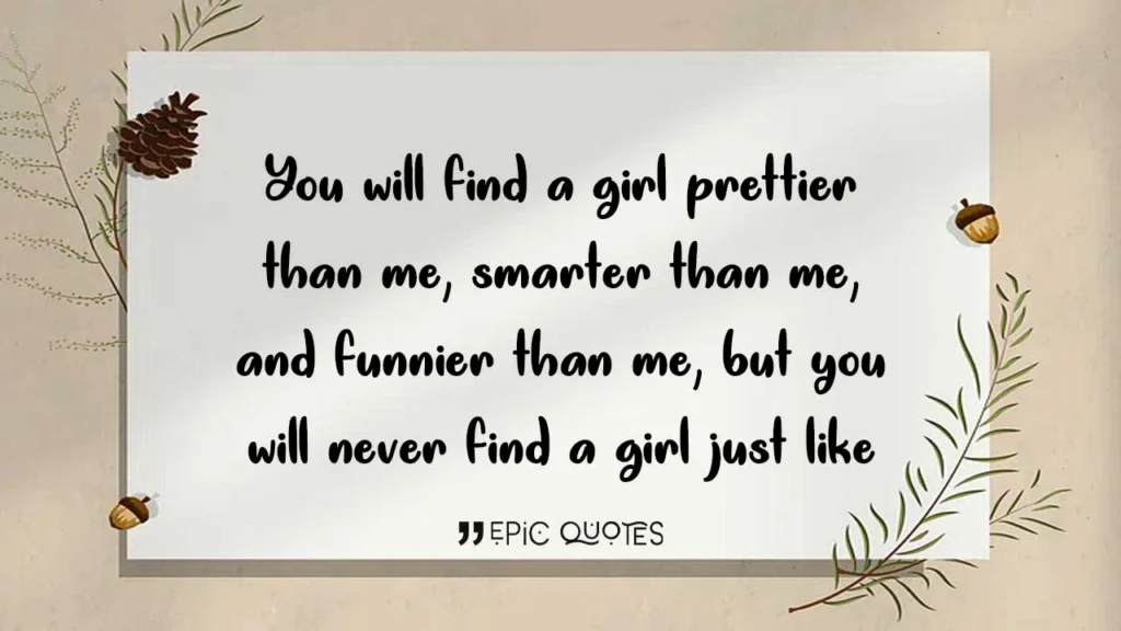 You will find a girl prettier than me, smarter than me, and funnier than me, but you will never find a girl just like me.